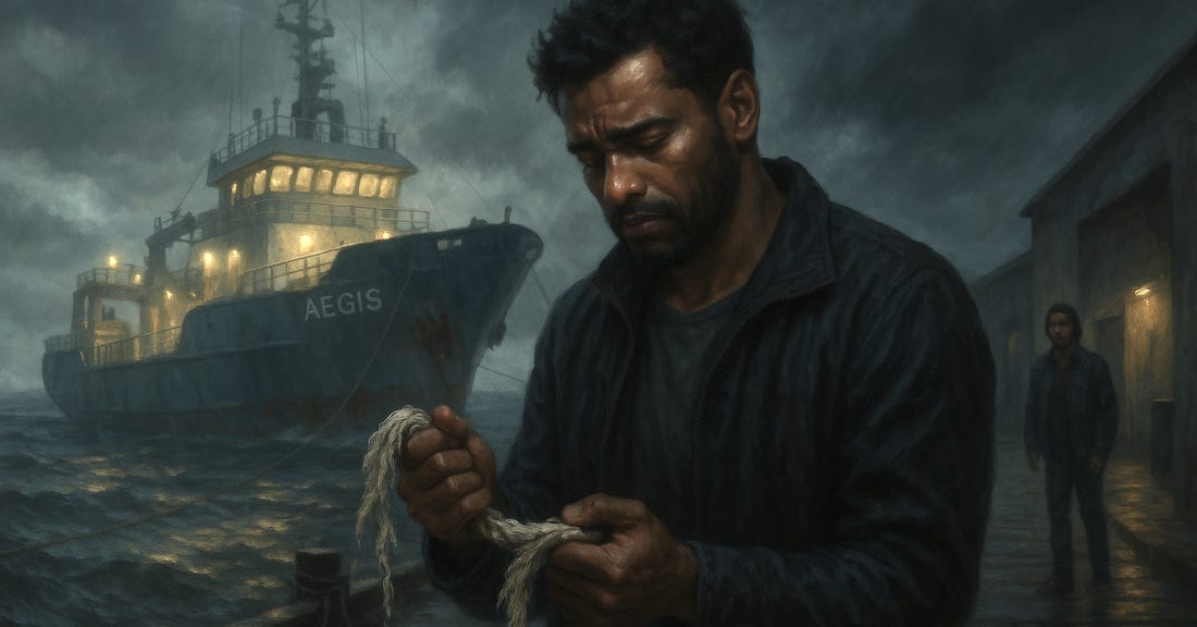 The Aegis rocked on the gray Atlantic swells, her hull groaning like a tired animal. Salt crust clung to every surface; the tang of diesel threaded the air. Parker Carbis stood at the bridge console, hands braced on the edge, eyes locked on the sonar sweep. The screen pulsed green, mocking him with silence. No debris signature. No beacon. No body.